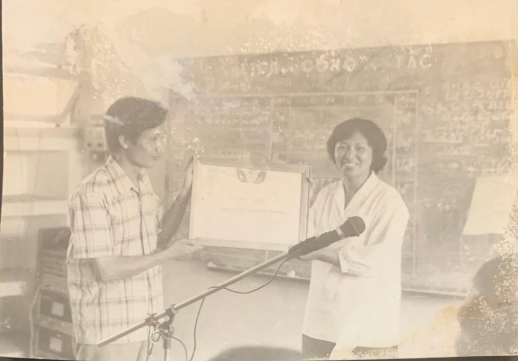 Cô Hương sinh năm 1946 tại Nam Định. Cô về dạy chuyên Hóa ở Ams từ năm đầu tiên 1985, nhưng chỉ dạy trọn vẹn một khóa H2 85-88 vì đến cuối 1989 thì đi sang Angola dạy học và ở đó đến 2022 mới về nước. Từ 1998 đến 2022 cô là Chủ tịch Hội người Việt Nam ở Angola, với cộng đồng có lúc lên đến 40,000 người Việt.
