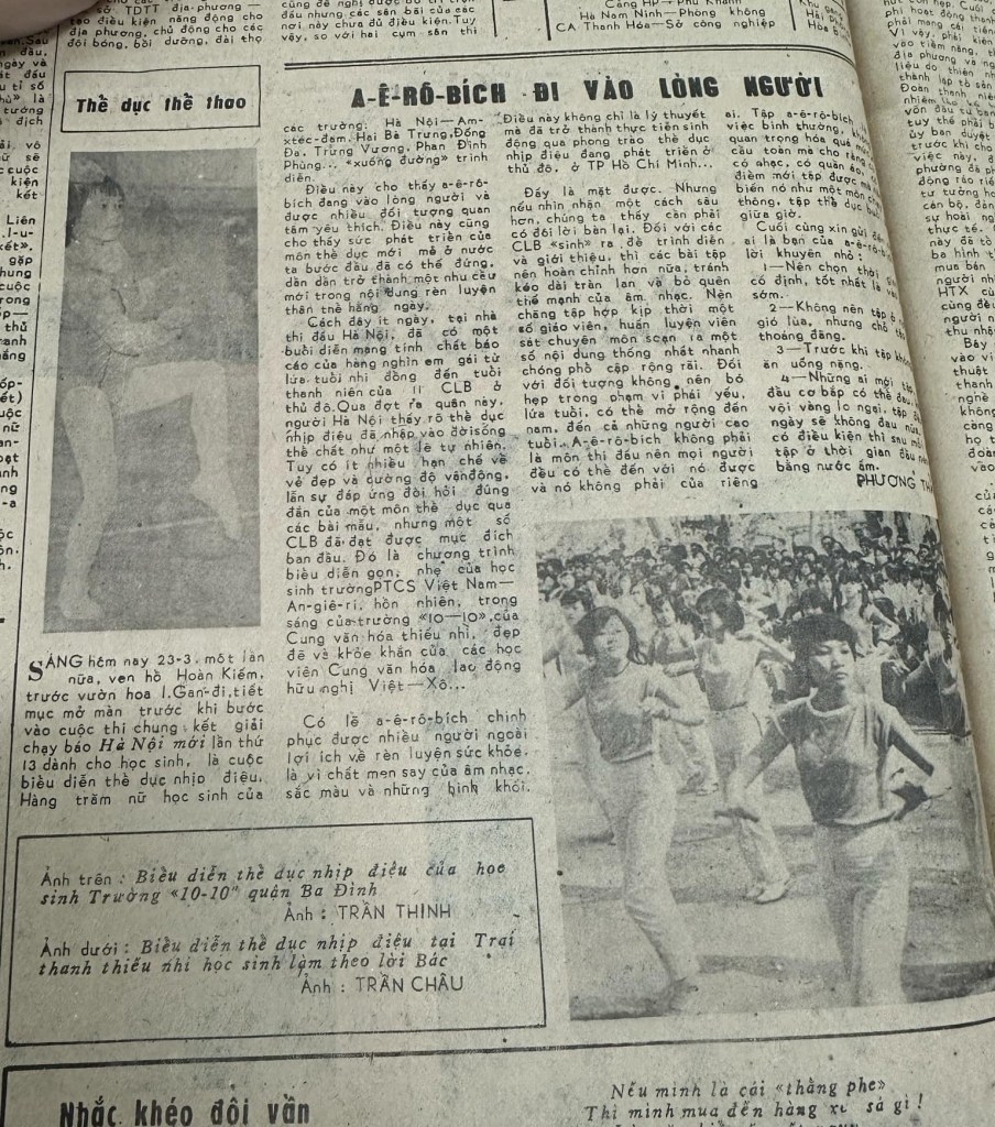 Bài trên báo Hà Nội Mới, tháng 3/1986, về học sinh trường Ams tham gia biểu diễn Aerobics nhân dịp 26/3:
