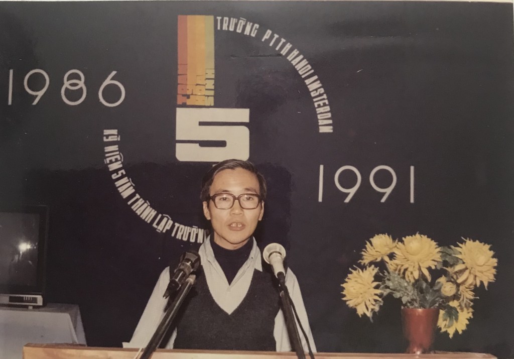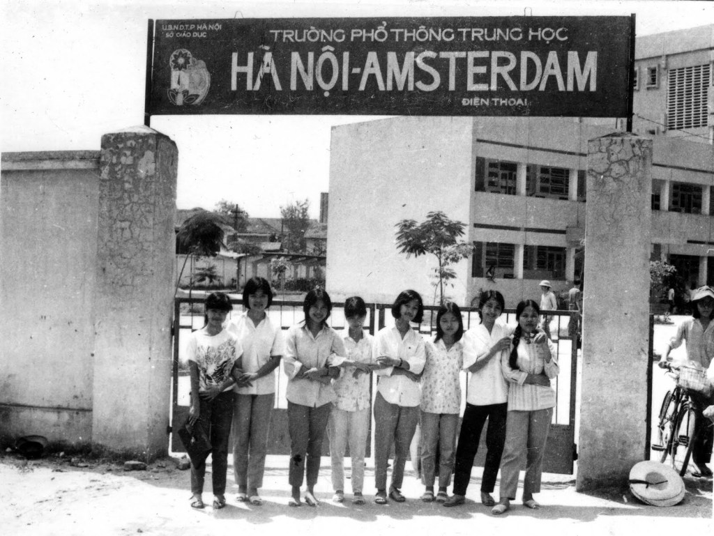 Lễ Khai giảng năm học 87-88, tháng 9/87. Tác giả: Nguyễn Sơn Tùng (chuyên Lý khóa 85-87, học 2 năm ở trường Ams)Sân sau còn đang thi công, và chưa có phù điêu trên mảng tườngKhu để xe đạp của học sinh. Bức tường dọc theo phố Núi Trúc. Ảnh trong khoảng từ 1986-88, sau đó khu này được tách ra cho trường Pháp thuê, trường Ams chỉ còn tầng 3 và 4 nhà B. Ba bể kim loại là của trạm cấp nước cổng ở phố Núi Trúc. Chú thích của thầy Lê Trọng Tuấn.Học sinh dắt xe từ nhà để xe ra cổng Nam CaoĐã có biển tên trường trên nóc tòa nhàCắt băng khánh thành. Ảnh chụp lại từ kỷ yếu 2005. Chưa rõ ngày tháng năm nào (86 hoặc 87)Chụp lại từ kỷ yếu 2005Lớp 12T1, năm học 87-88. Phía sau là trường THCS Giảng Võ đang xây.Cắm trại ở sân sau. Phía sau là khu nhà 2 tầng có giếng trời. Lớp Toán khóa 85-88Lối vào cánh gà 2 tầng, bên trái tòa nhà chính. Thầy Nguyễn Hàm và các học sinh Lý khóa 85-88Ảnh đề 9/1/1987. Có lẽ đây ko phải cổng chính Nam Cao vì ko thấy bốt bảo vệ cổngBuổi tập quân sự năm học 86-87, khối 10 là khóa 86-89. Phía sau là công trường xây dựng trường Giảng Võ, khi ấy còn chưa có tường rào ngăn với trường Ams. Tòa nhà 11 tầng khách sạn Thăng Long mờ mờ phía sau. Ảnh do thầy Nguyễn Đình Huy (Sử) cung cấp.Thầy Nguyễn Đình Huy phát biểu trong lễ kỷ niệm 5 năm thành lập trường. Vì quyết định chính thức là năm 1986, nên khi ấy lấy mốc thành lập từ 1986, sau này đổi sang mốc 1985.