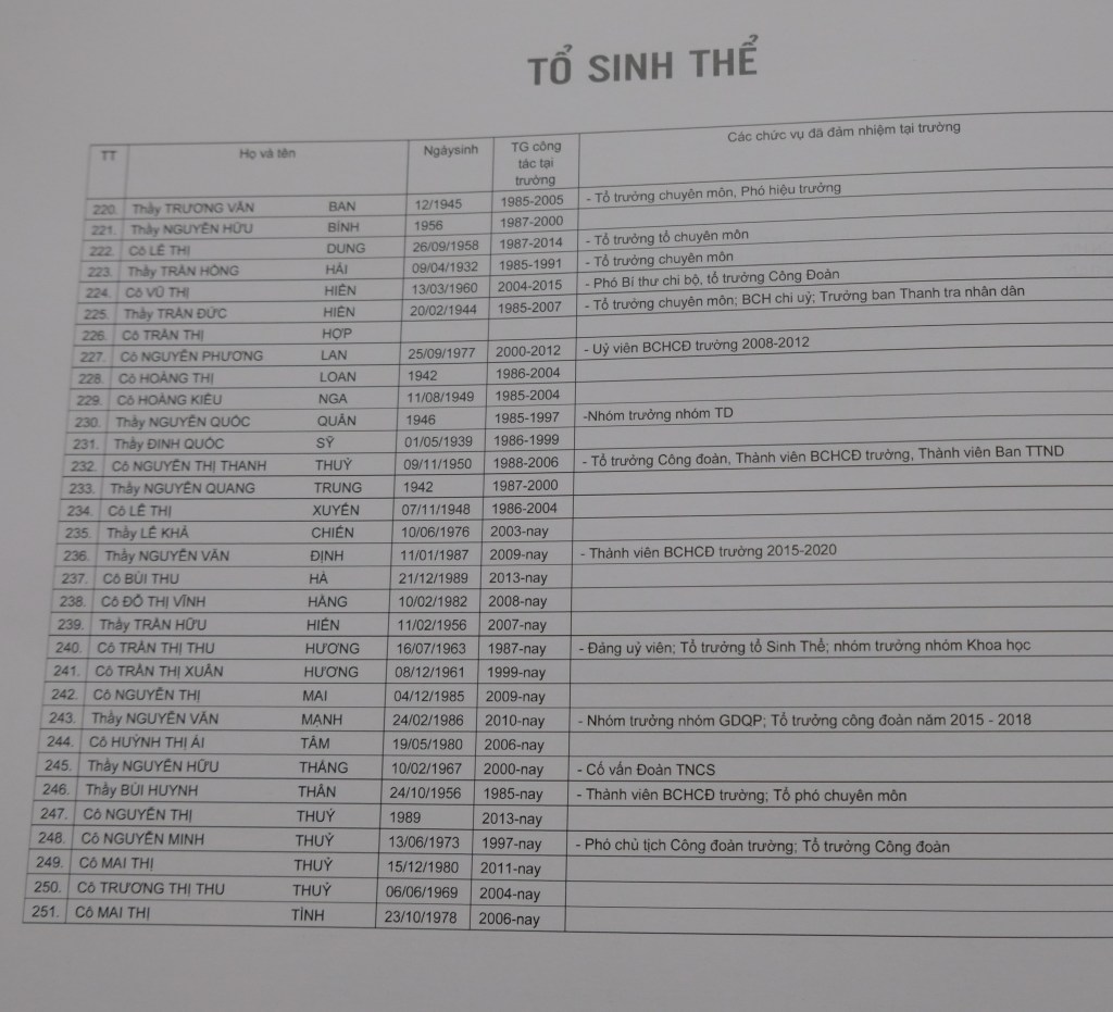 Tổ Sinh học – Thể dục (#220-251):