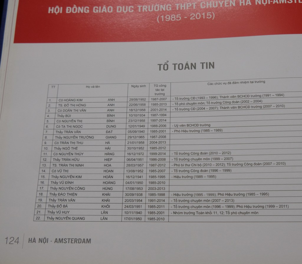 Danh sách tất cả cán bộ giáo viên trường Ams đã từng công tác trong giai đoạn 1985-2015, tổng cộng 308 người. Nguồn: kỷ yếu 30 năm.