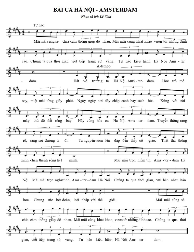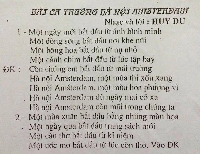 Trường Hà nội – Amsterdam có một bài hát truyền thống từ 1990, chỉ 5 năm sau khi thành lập. Bài hát có câu chuyện thú vị.