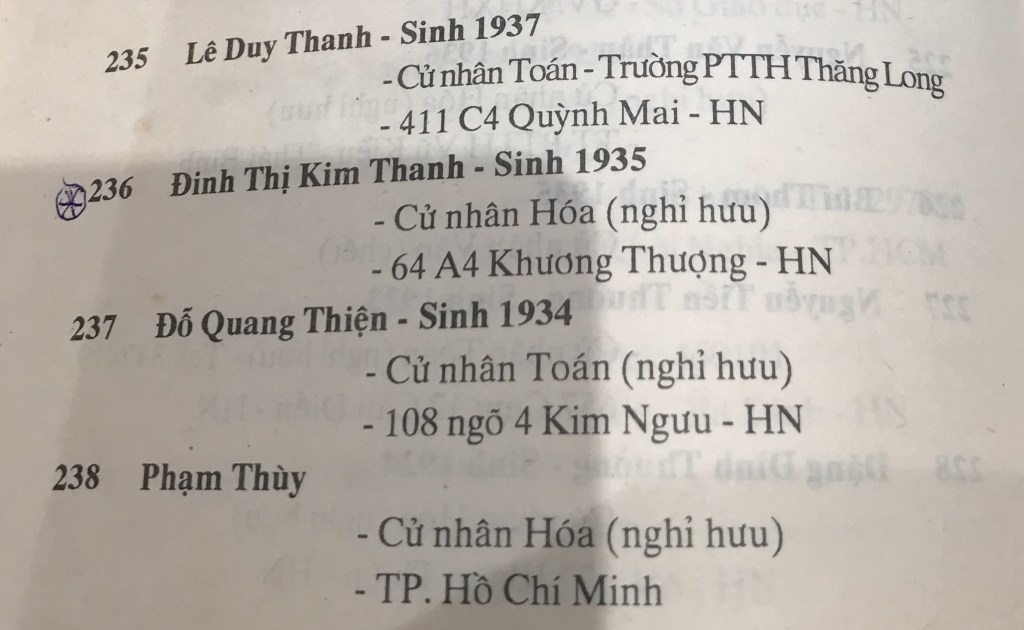 Cô Thanh sinh năm 1935, là giáo viên dạy khóa chuyên Hóa đầu tiên của Hà nội năm 82-85 ở Trường PTTH Lý Thường Kiệt. Năm 85 cô chuyển về Ams và dạy đến năm 1990 thì nghỉ hưu.