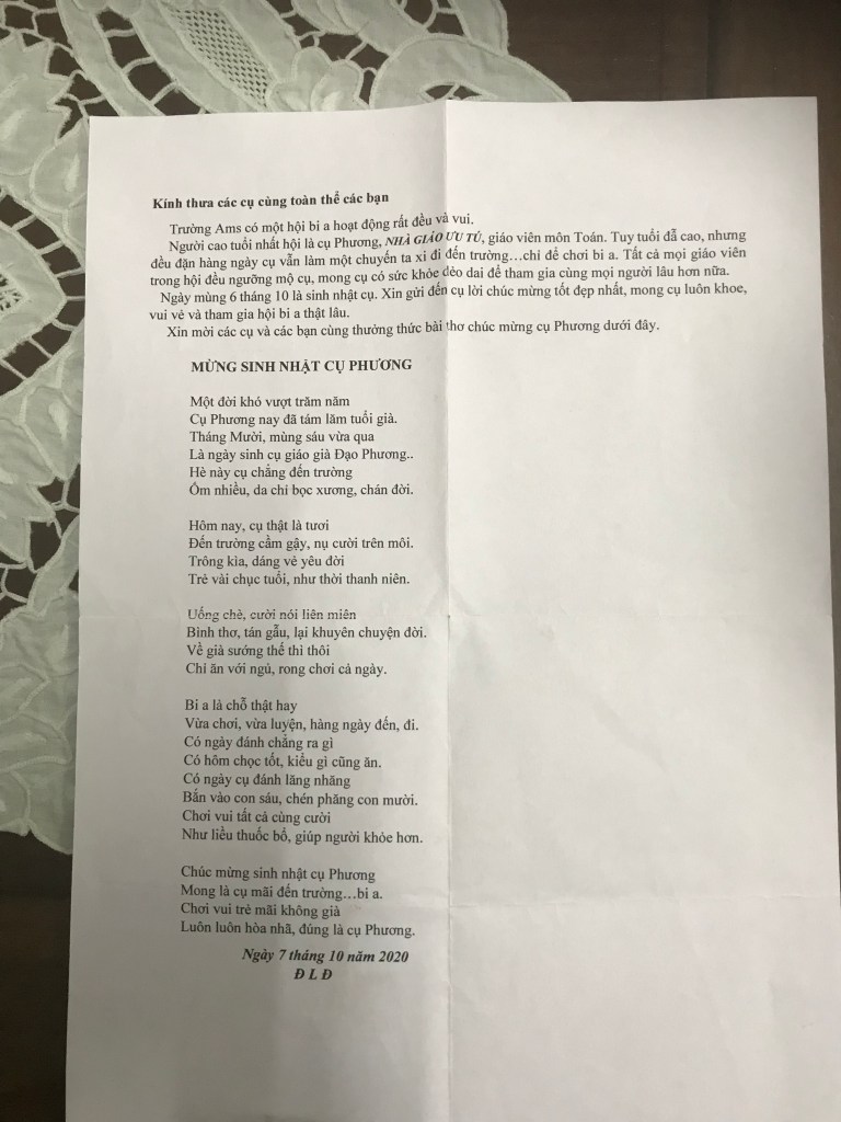 Năm 1985 thầy chuyển công tác về trường Ams, đến 1995 nghỉ hưu. Thầy tiếp tục dạy ở nhà cho đến 2005 thì nghỉ hẳn.