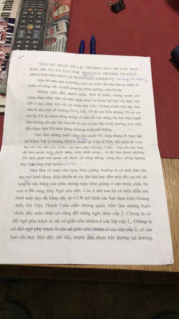 Tôi mãi không quên và biết ơn khi được học sơ tán ở trường cấp 2 Yên hoà, trường PTCN cấp 3 Đống đa và đã trưởng thành ở CLB thiếu nhi Hà nội